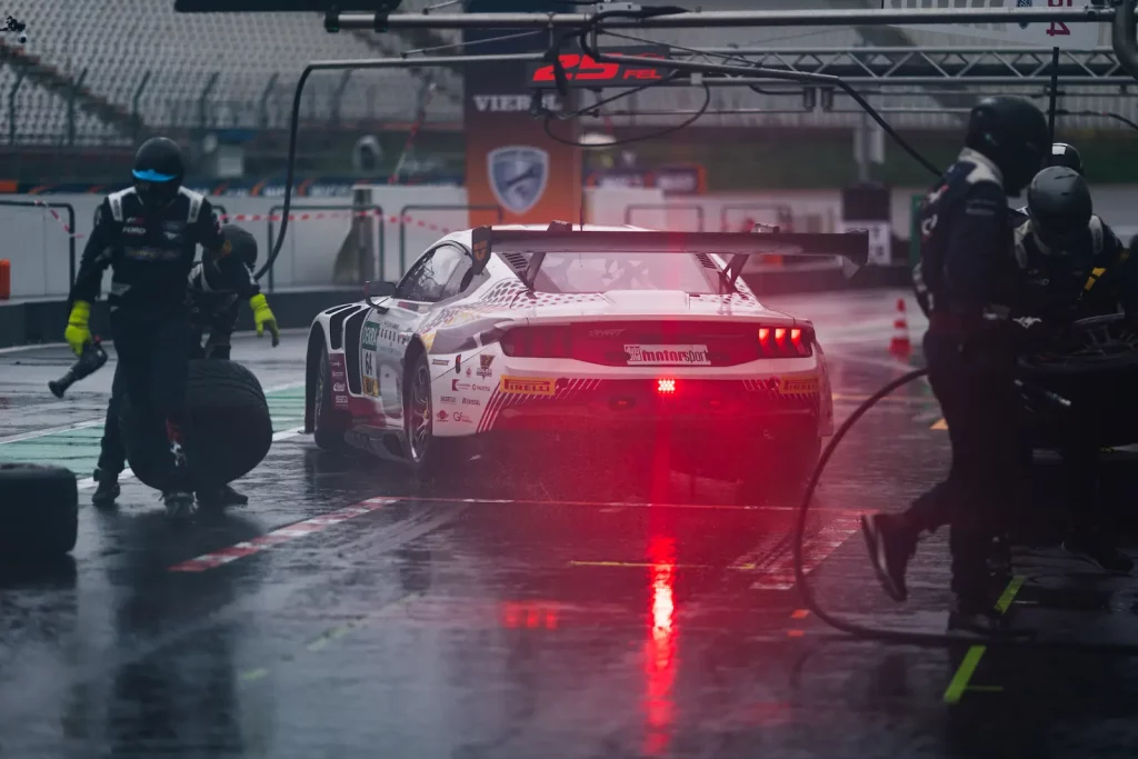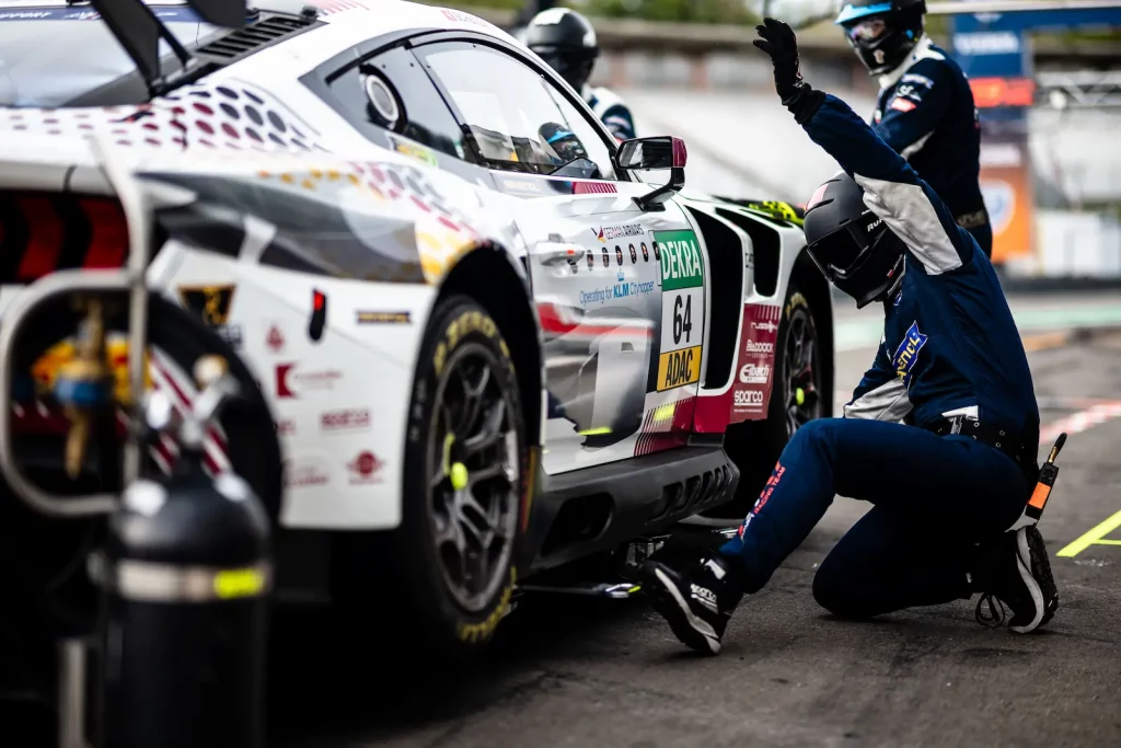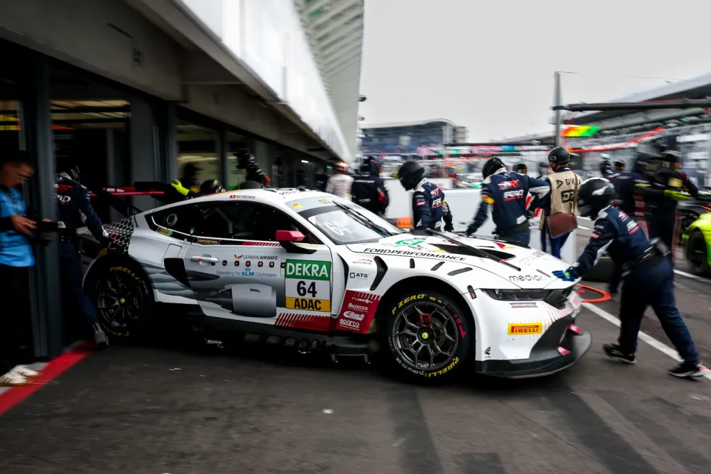 The Ford Mustang GT3 #64 in the exclusive German Airways design